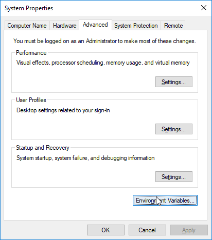 - Go to "System Properties" (Can be found on Control Panel > System and Security > System > Advanced System Settings)