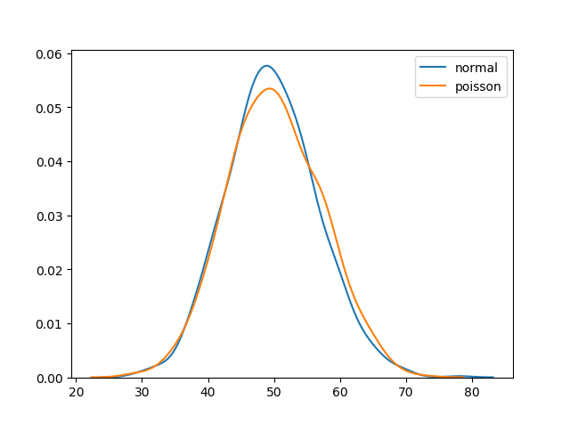 But we can see that similar to binomial for a large enough poisson distribution it will become similar to normal distribution with certain std dev and mean.