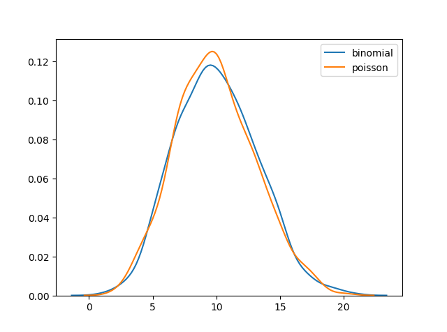 distribution is near identical to poisson distribution such that n * p is nearly equal to lam.